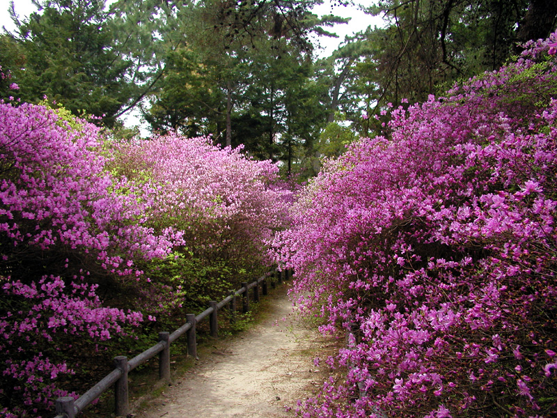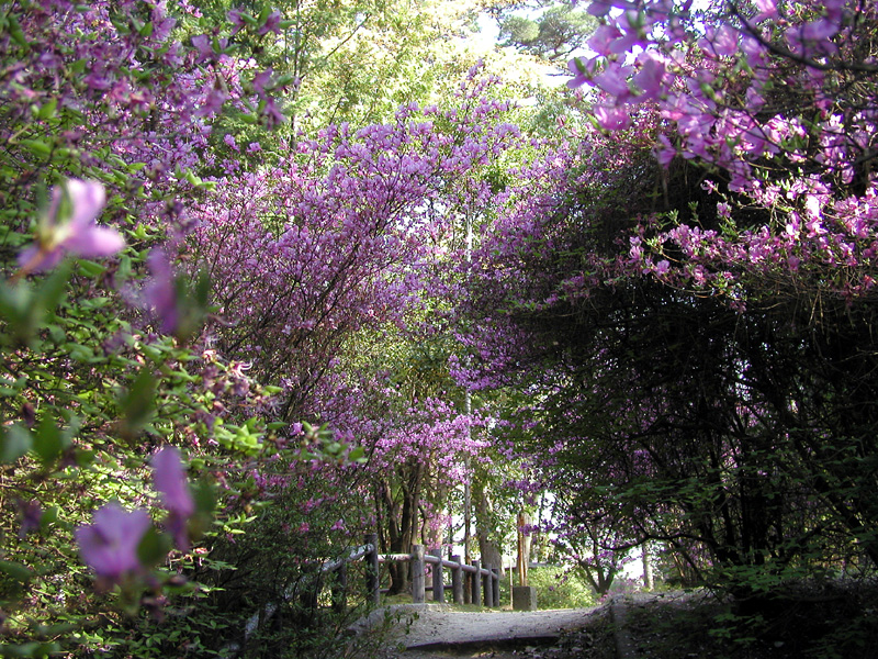 躑躅を以て覆われ、その情景は千紫万紅天に映ずるの美観にて千古の神蹟にふさわしい。