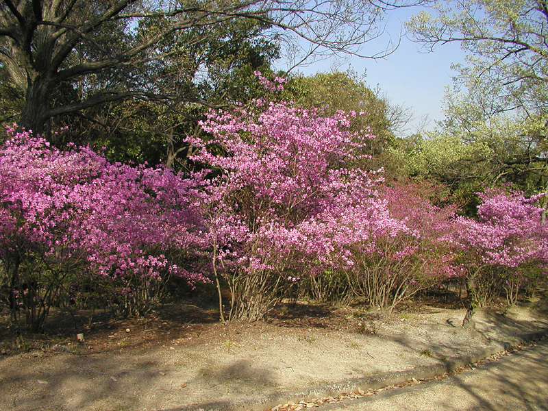 大東亜戦争以前には周辺地区を含め二十万株を誇った躑躅も周辺の開発・宅地造成など