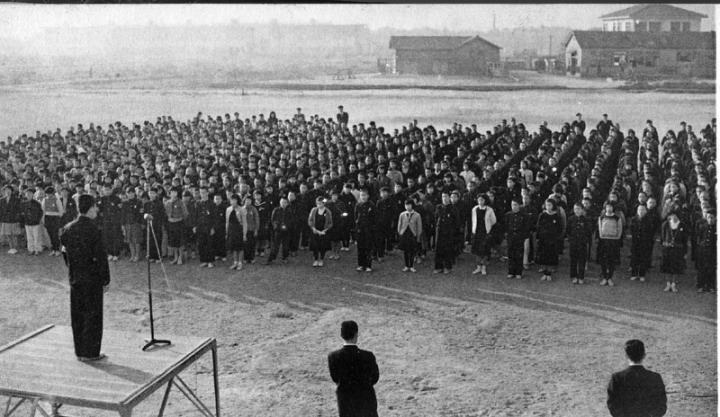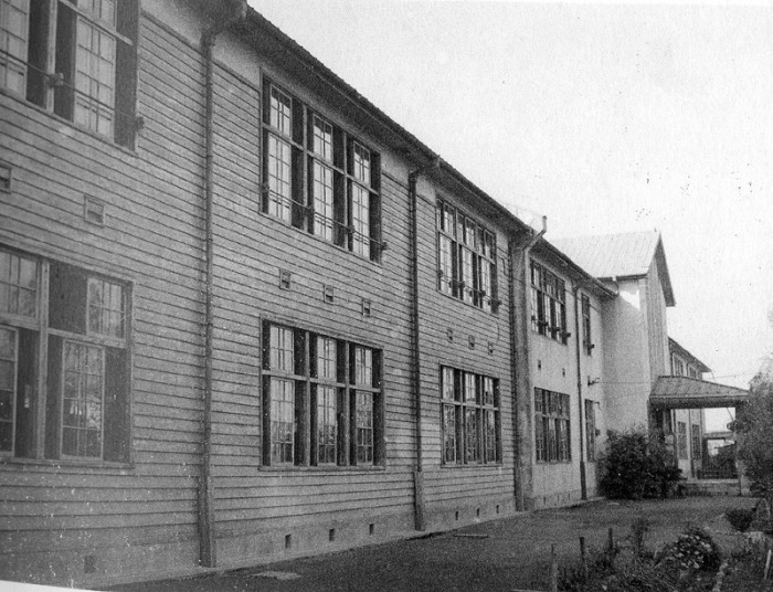 旧正門(右端)と旧校舎